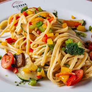 Fettuccinecom legumes salteados