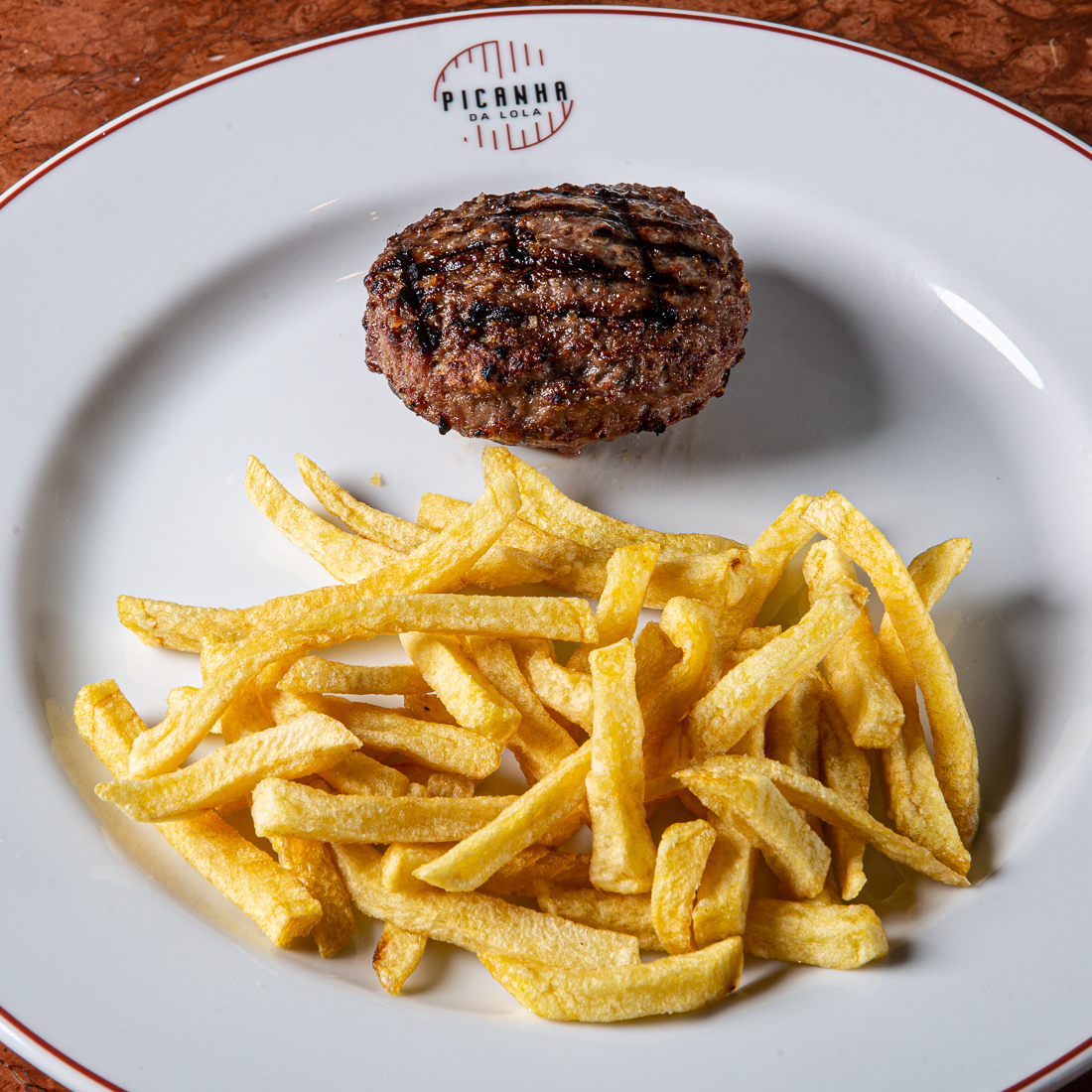 Hambúrguer mini 100gr acompanhado c/ arroz ou batata frita